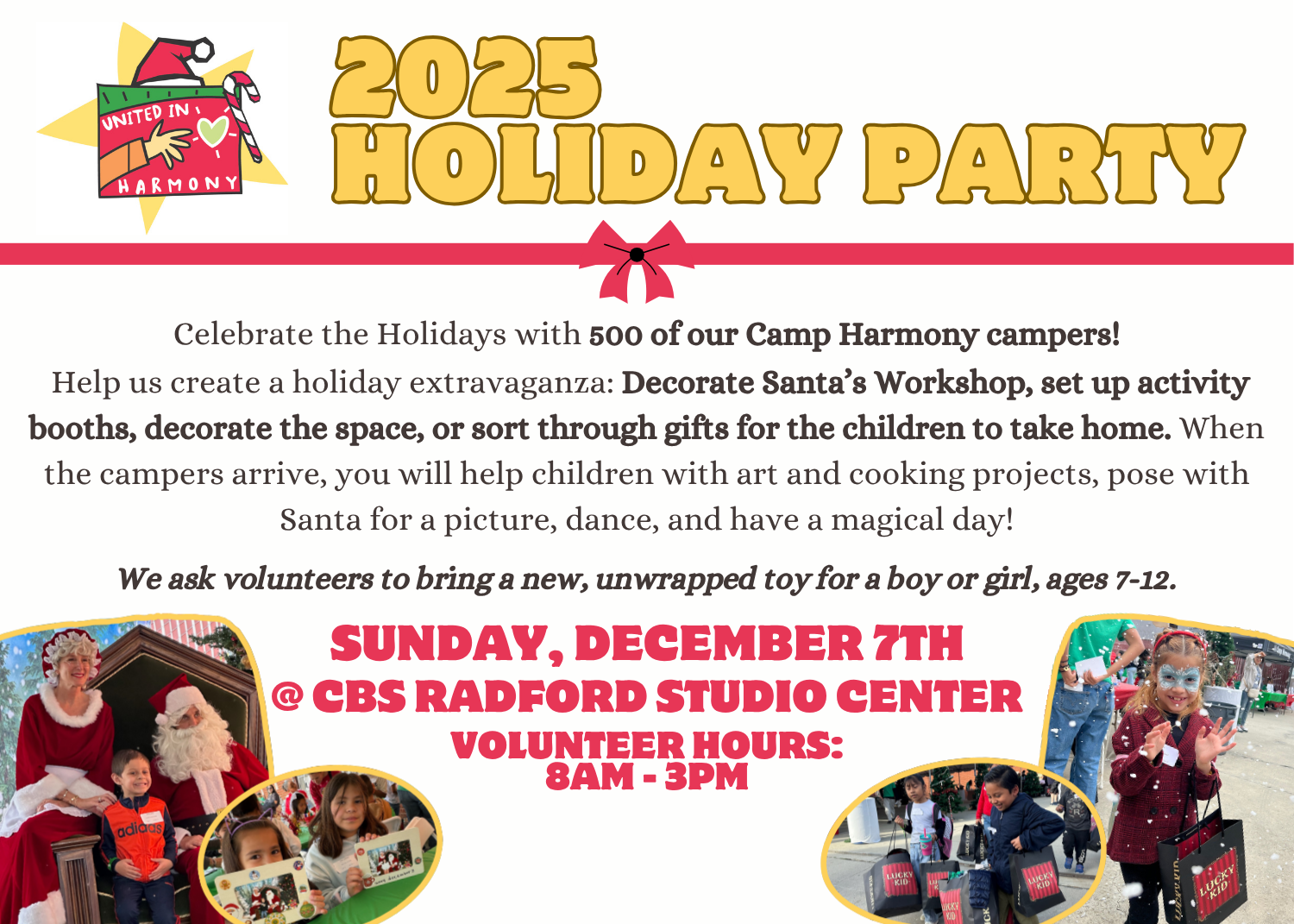 The United in Harmony annual fundraiser supports the programs and services that United in Harmony and Camp Harmony sponsor throughout the year. We we will be celebrating with Camp Harmony in Beverly Hills, May 3rd, 2024. The Annual Fundraiser is the premier event of the year for all the families who are currently involved or want to be included in United in Harmony. Please join us for this fun and special event! Stay tuned for more information!